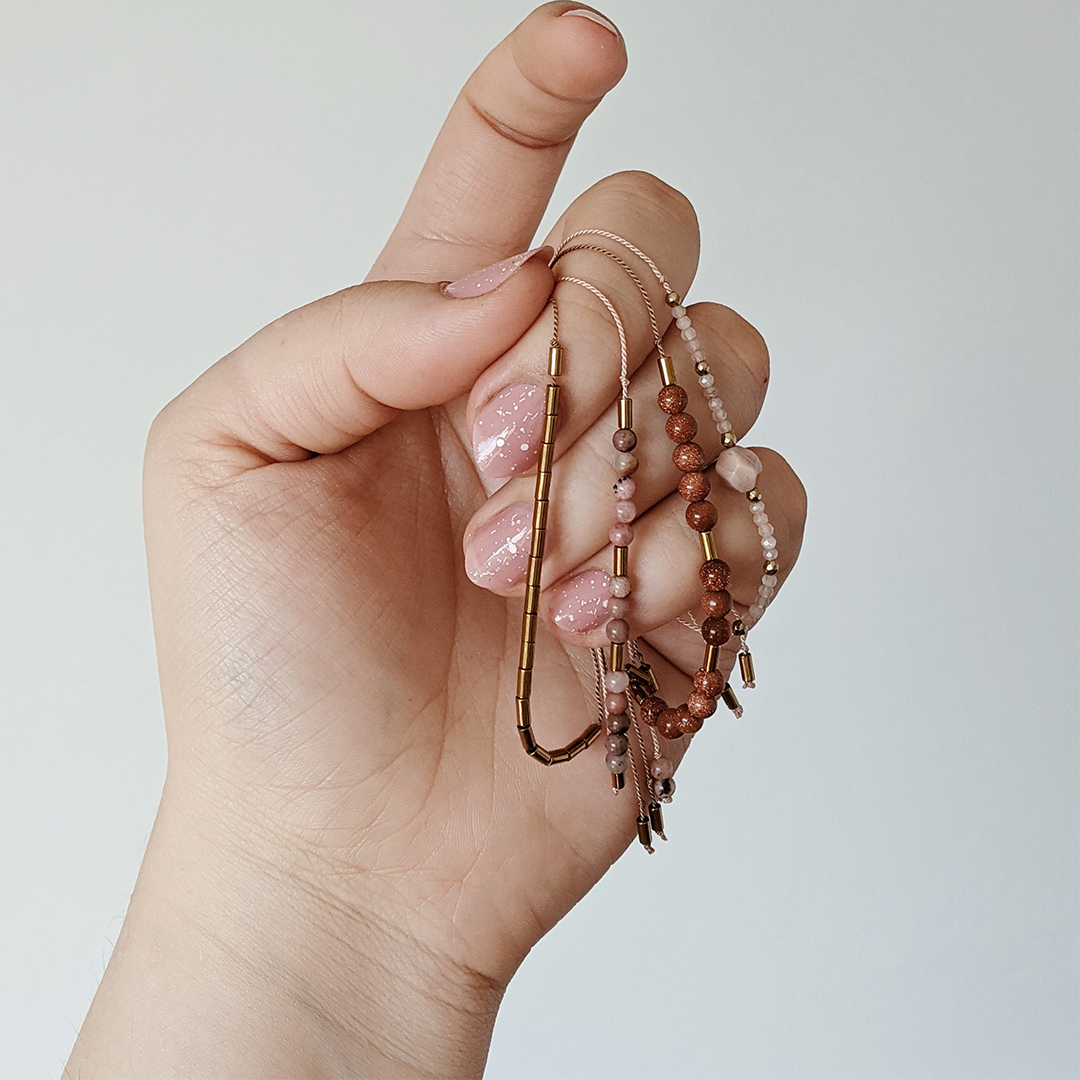 Bransoletka na jedwabnej nici Arien z piaskiem pustyni. ⁣Regulowana przesuwnymi elementami.